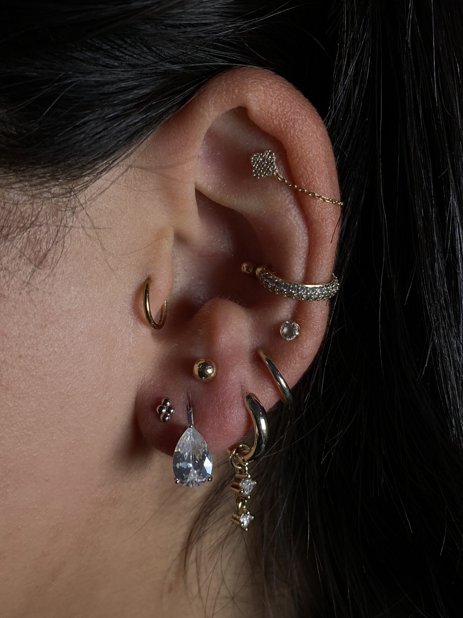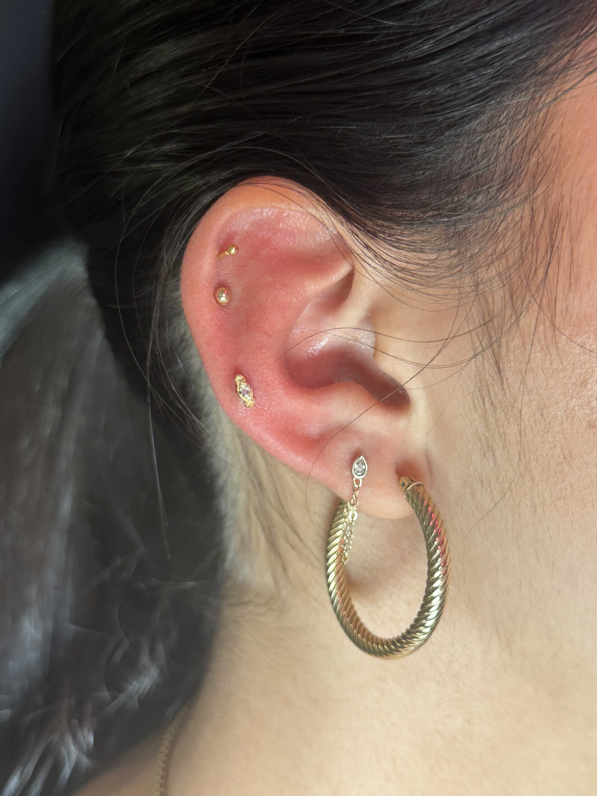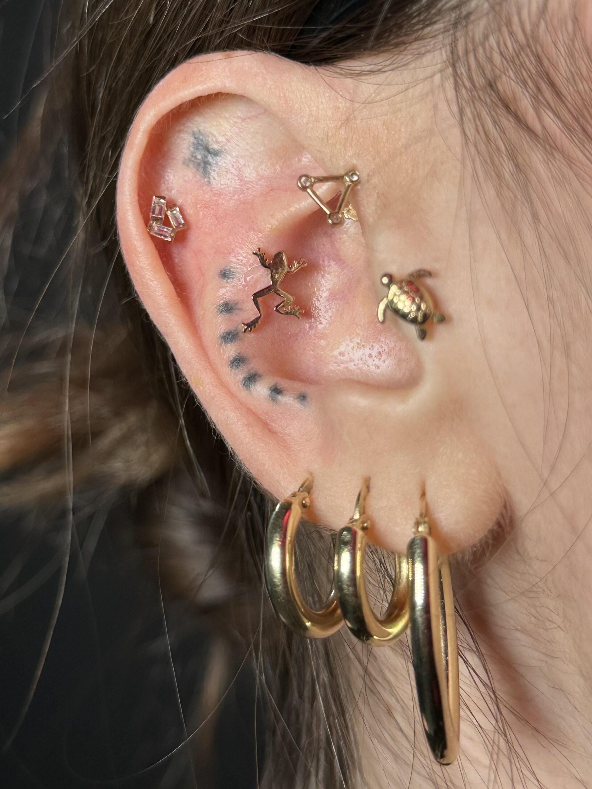 Specializing in anatomy-dependent piercings and gender-affirming placements, Gab focuses on creating custom looks tailored to each client’s body and personal style. With a strong eye for fashion and a love for making music, Gab views piercing as a form of creative expression and self-identity.