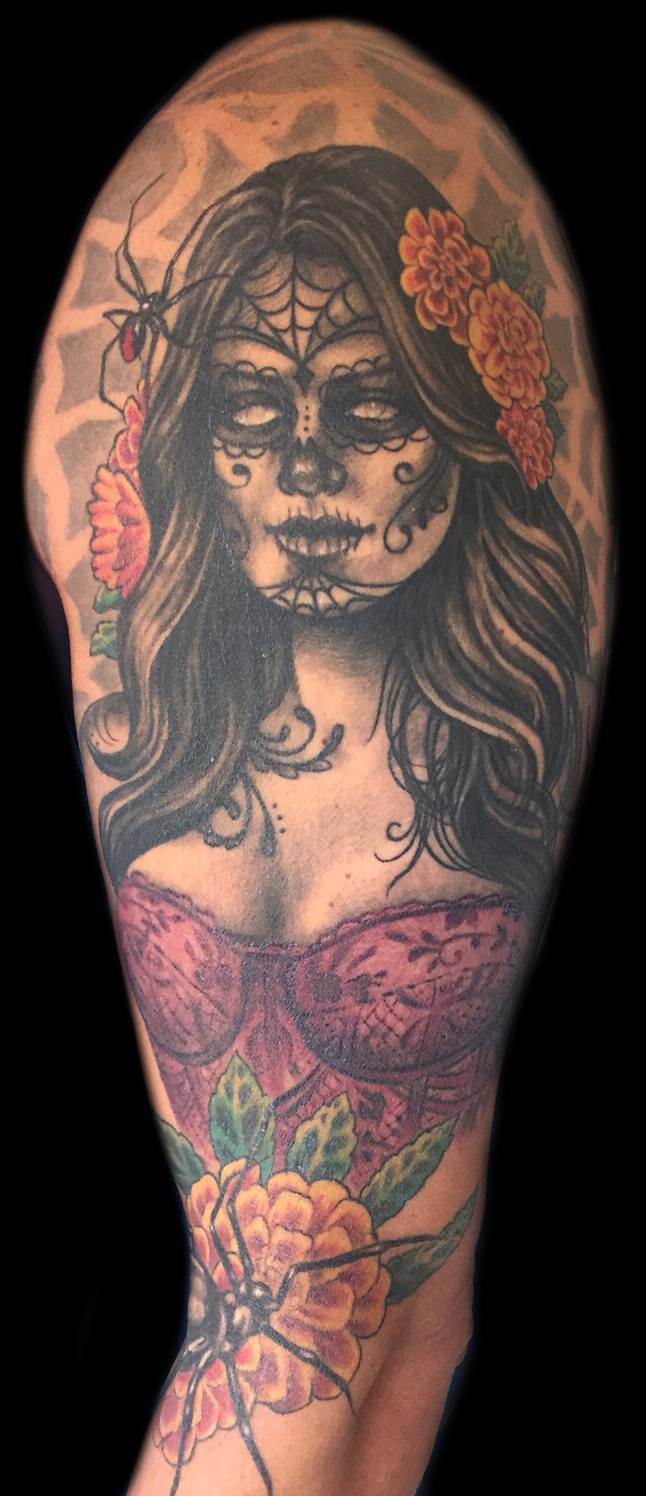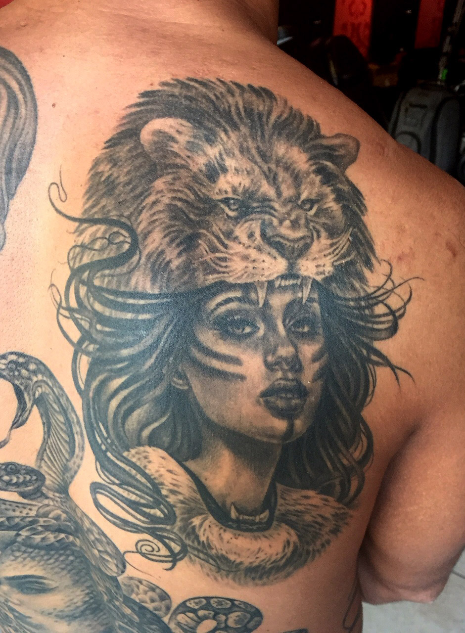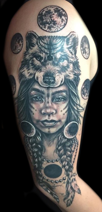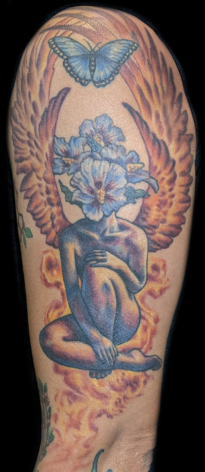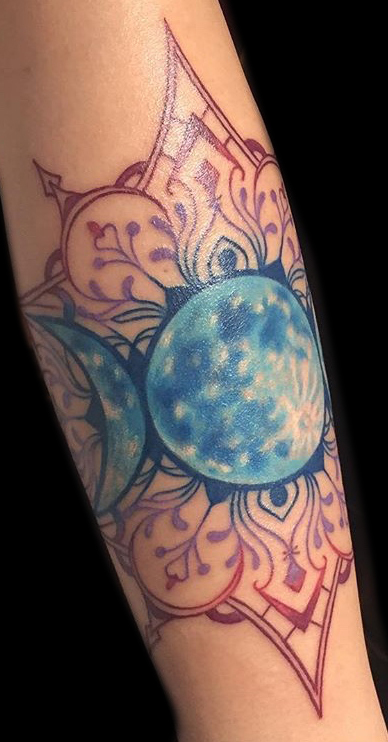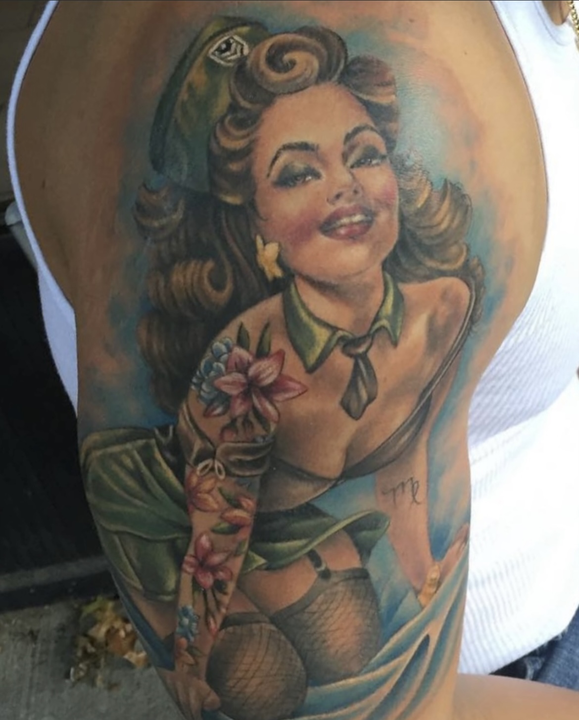 My name is Nicole Palapoli, I am a New York artist whose entire life has been driven by my exploration of visual arts. My artwork exists to illuminate our soul’s experience in human form; the duality of love and heartbreak, our connection with nature, sacred symbols and the unified field of consciousness. As it moves through me and onto it’s surface, my artwork has given my life a purpose beyond my own healing. My wish is to evoke reflective conversation, deep connections, emotional and spiritual healing in the hearts of my viewers as we co-create a more conscious existence. I graduated from the School of Visual Arts in NYC in 2002, studied Art Education at Queens College and studied abroad in Italy and Spain. After becoming a High School art teacher for the Board of Education, I felt completely restricted and needed a full time outlet for my creativity. I was introduced to tattooing in 2007 and quickly reinvented my life and never looked back. I am deeply honored and grateful to adorn human bodies and take it very seriously. My tattoo style is fluid, but as it evolves, I gravitate more toward color portraits, pinup girls and nature themed pieces rather than rigid geometrics. In 2012, I opened my first shop “Body Language Tattoo” in Astoria, Queens. After 7 successful years of business, I decided to close the doors in exchange for more flexibility to pursue my personal artwork and opened “Innerspace Gallery”. It was a private studio, in which I tattooed, sold various types of merchandise with my art as the theme, as well as offered virtual critiques, paintings, body paint sessions, paint & sips, murals, lessons and demos. Now I have just joined the crew at Red Baron Ink and I’m excited to see where this leads my art… hope to tattoo you soon 🙂 and thank you for exploring my artwork!
