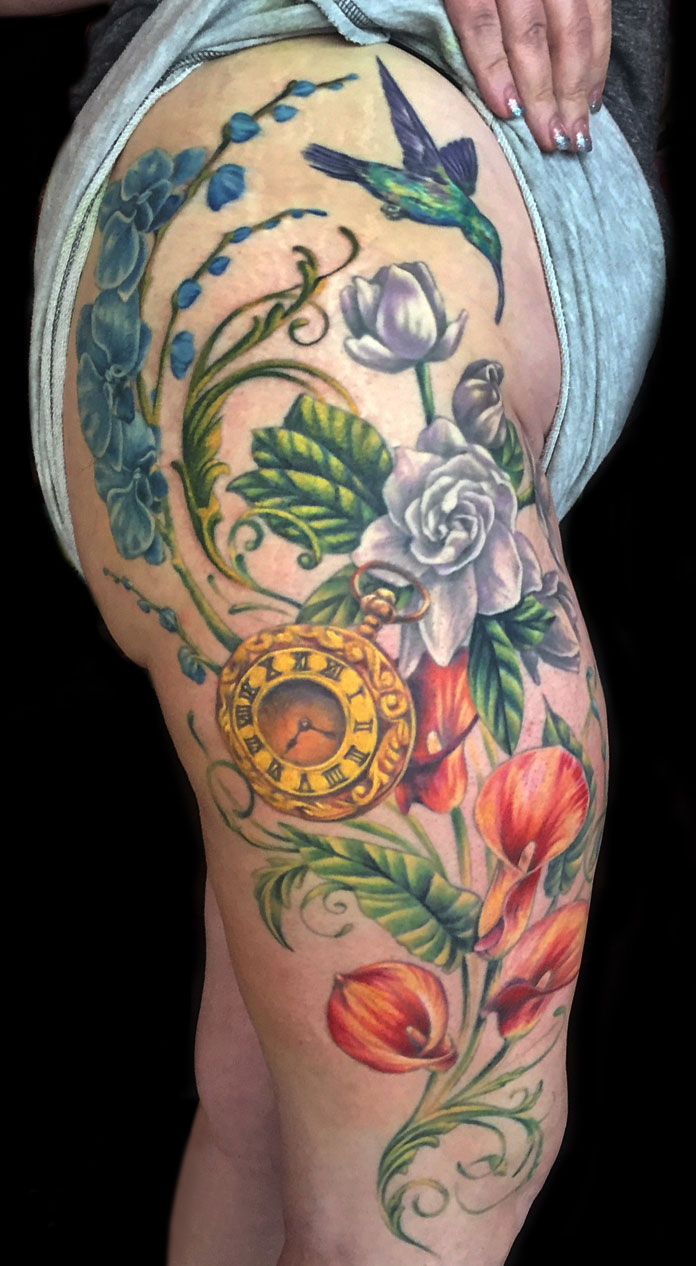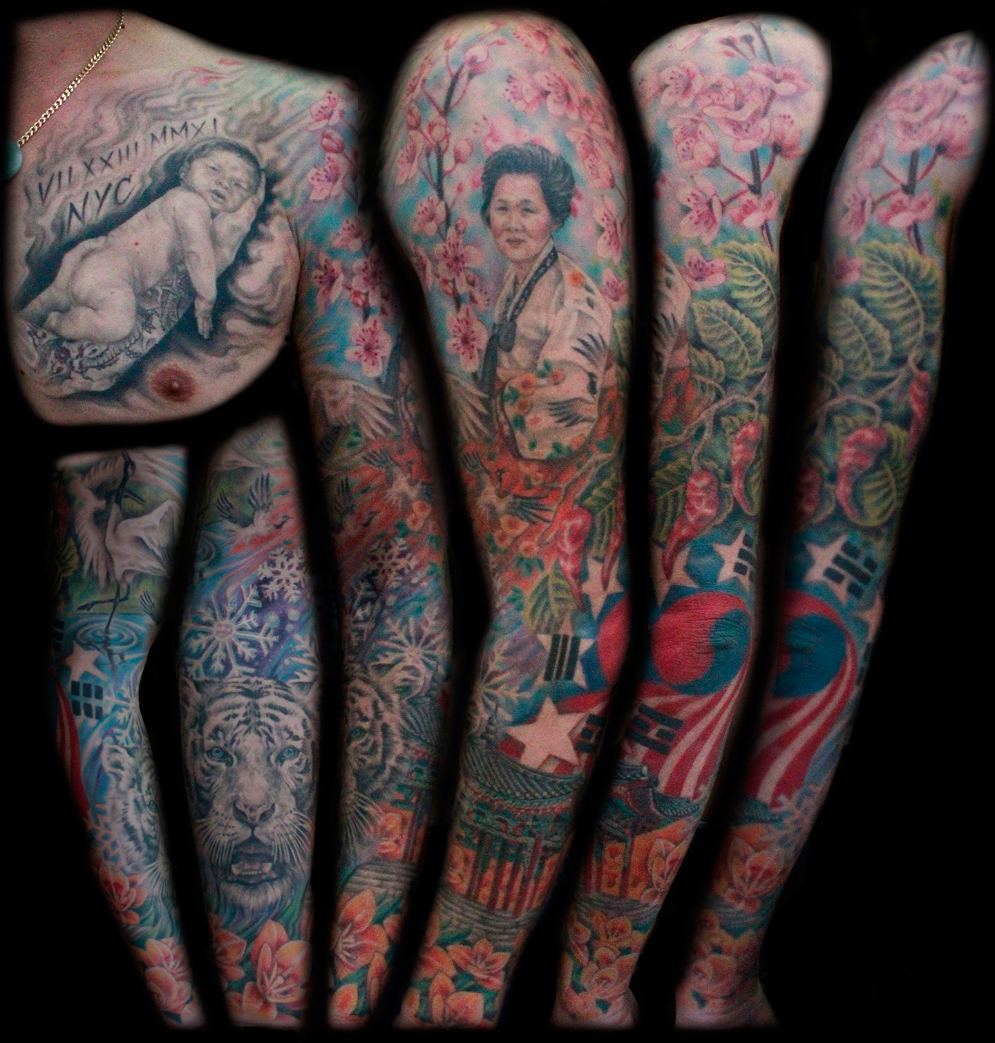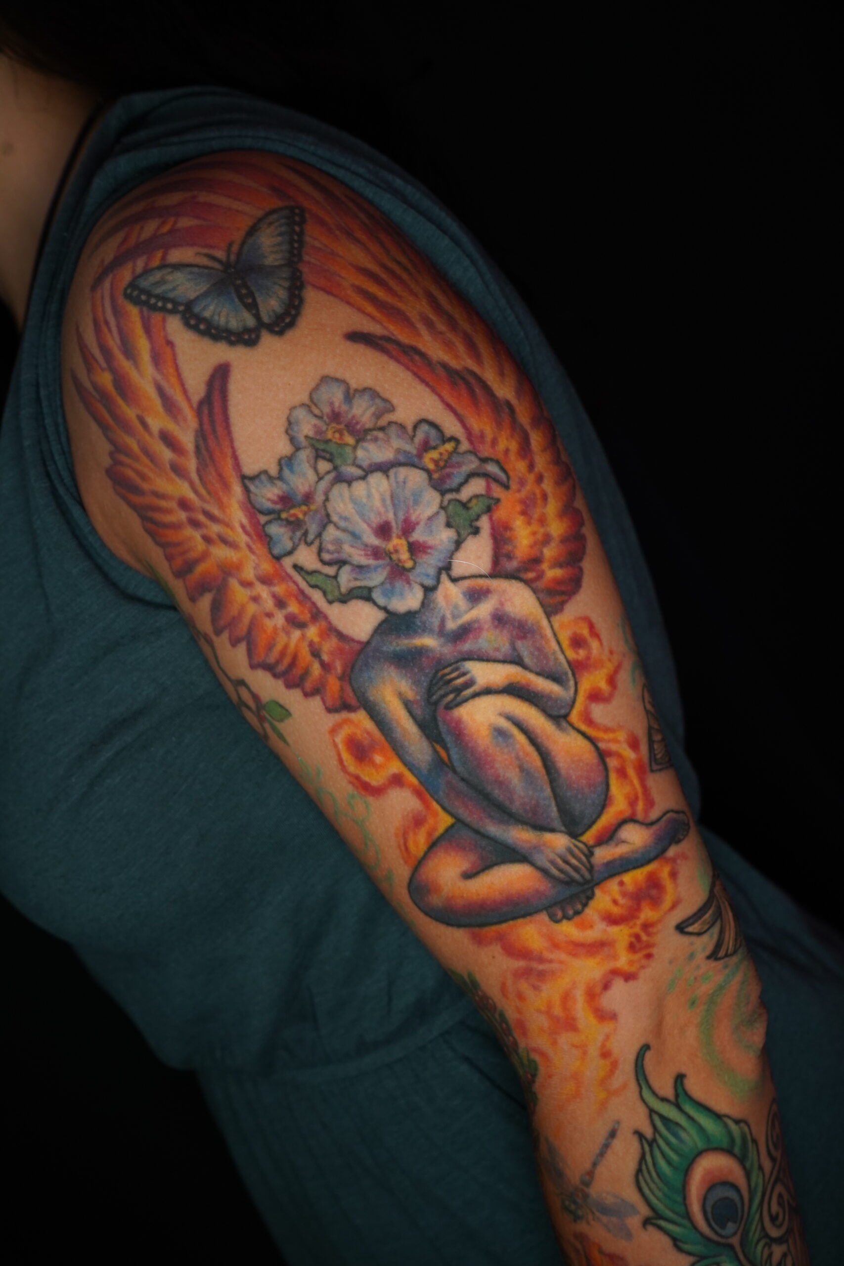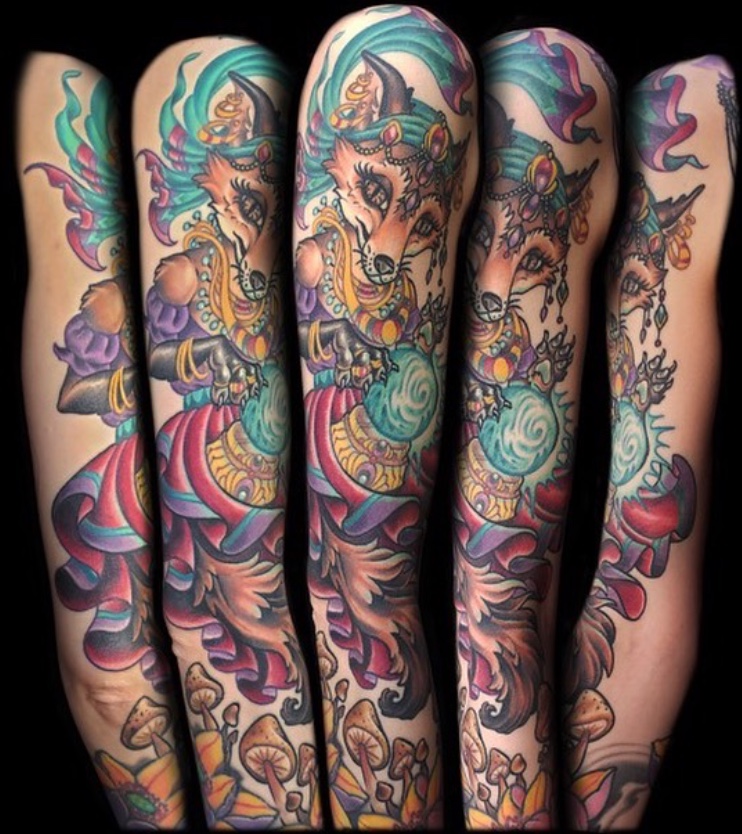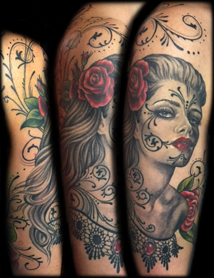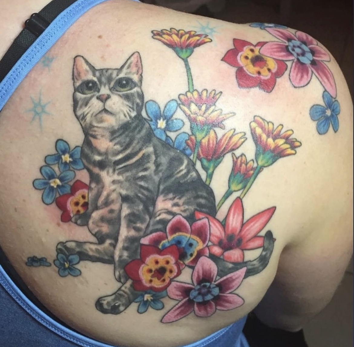 My name is Nicole Palapoli, I am a New York artist whose entire life has been driven by my exploration of visual arts. My artwork exists to illuminate our soul’s experience in human form; the duality of love and heartbreak, our connection with nature, sacred symbols and the unified field of consciousness. As it moves through me and onto it’s surface, my artwork has given my life a purpose beyond my own healing. My wish is to evoke reflective conversation, deep connections, emotional and spiritual healing in the hearts of my viewers as we co-create a more conscious existence. I graduated from the School of Visual Arts in NYC in 2002, studied Art Education at Queens College and studied abroad in Italy and Spain. After becoming a High School art teacher for the Board of Education, I felt completely restricted and needed a full time outlet for my creativity. I was introduced to tattooing in 2007 and quickly reinvented my life and never looked back. I am deeply honored and grateful to adorn human bodies and take it very seriously. My tattoo style is fluid, but as it evolves, I gravitate more toward color portraits, pinup girls and nature themed pieces rather than rigid geometrics. In 2012, I opened my first shop “Body Language Tattoo” in Astoria, Queens. After 7 successful years of business, I decided to close the doors in exchange for more flexibility to pursue my personal artwork and opened “Innerspace Gallery”. It was a private studio, in which I tattooed, sold various types of merchandise with my art as the theme, as well as offered virtual critiques, paintings, body paint sessions, paint & sips, murals, lessons and demos. Now I have just joined the crew at Red Baron Ink and I’m excited to see where this leads my art… hope to tattoo you soon 🙂 and thank you for exploring my artwork!