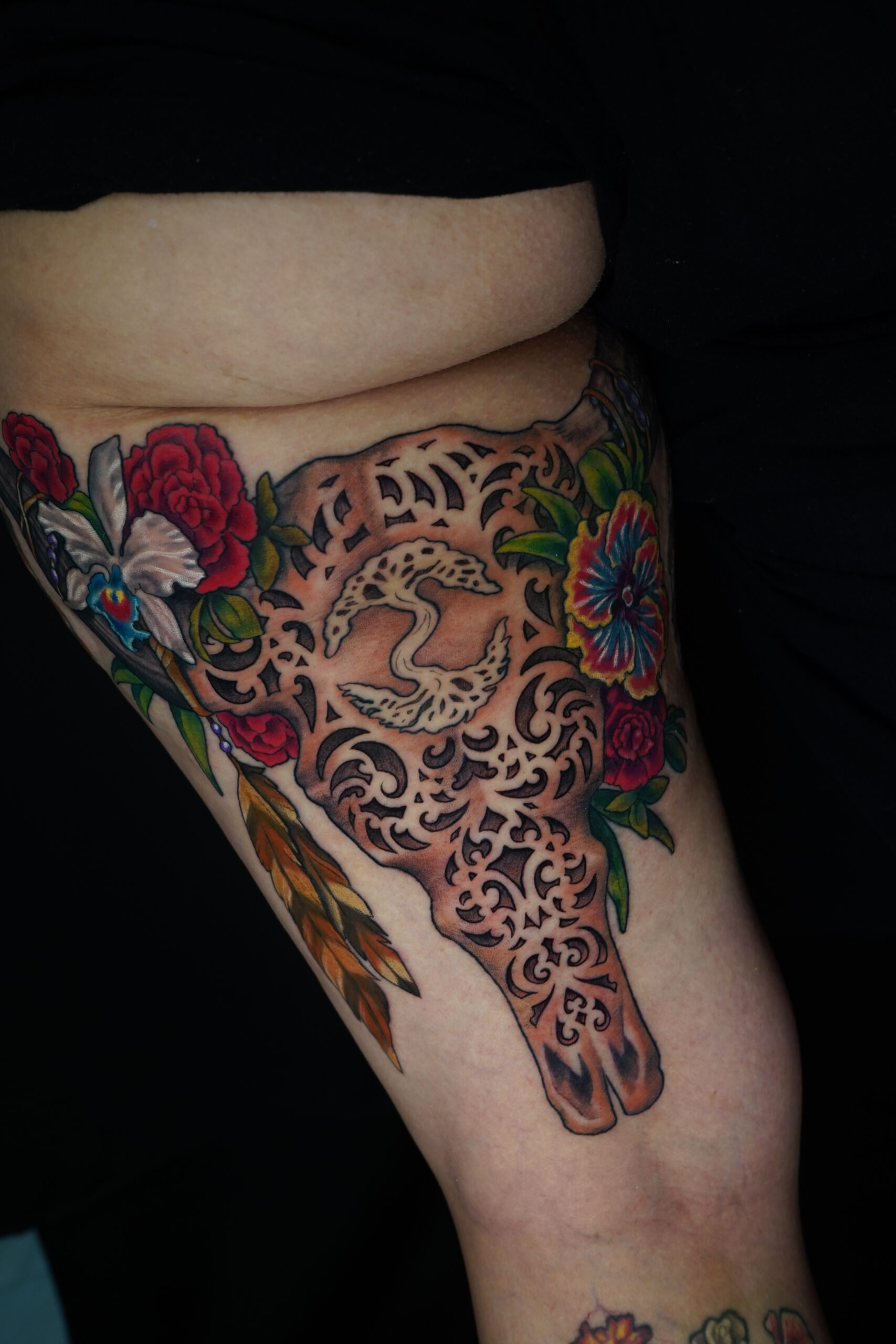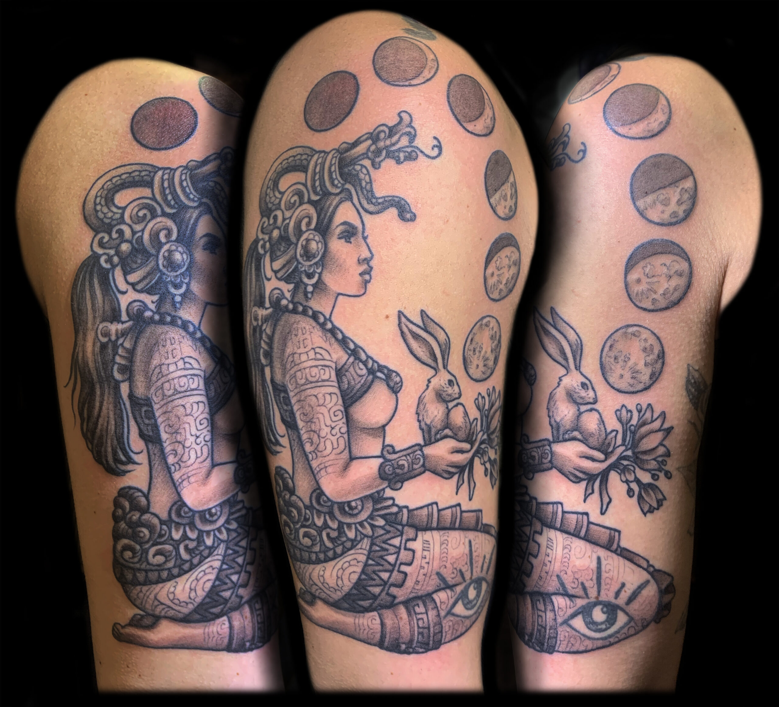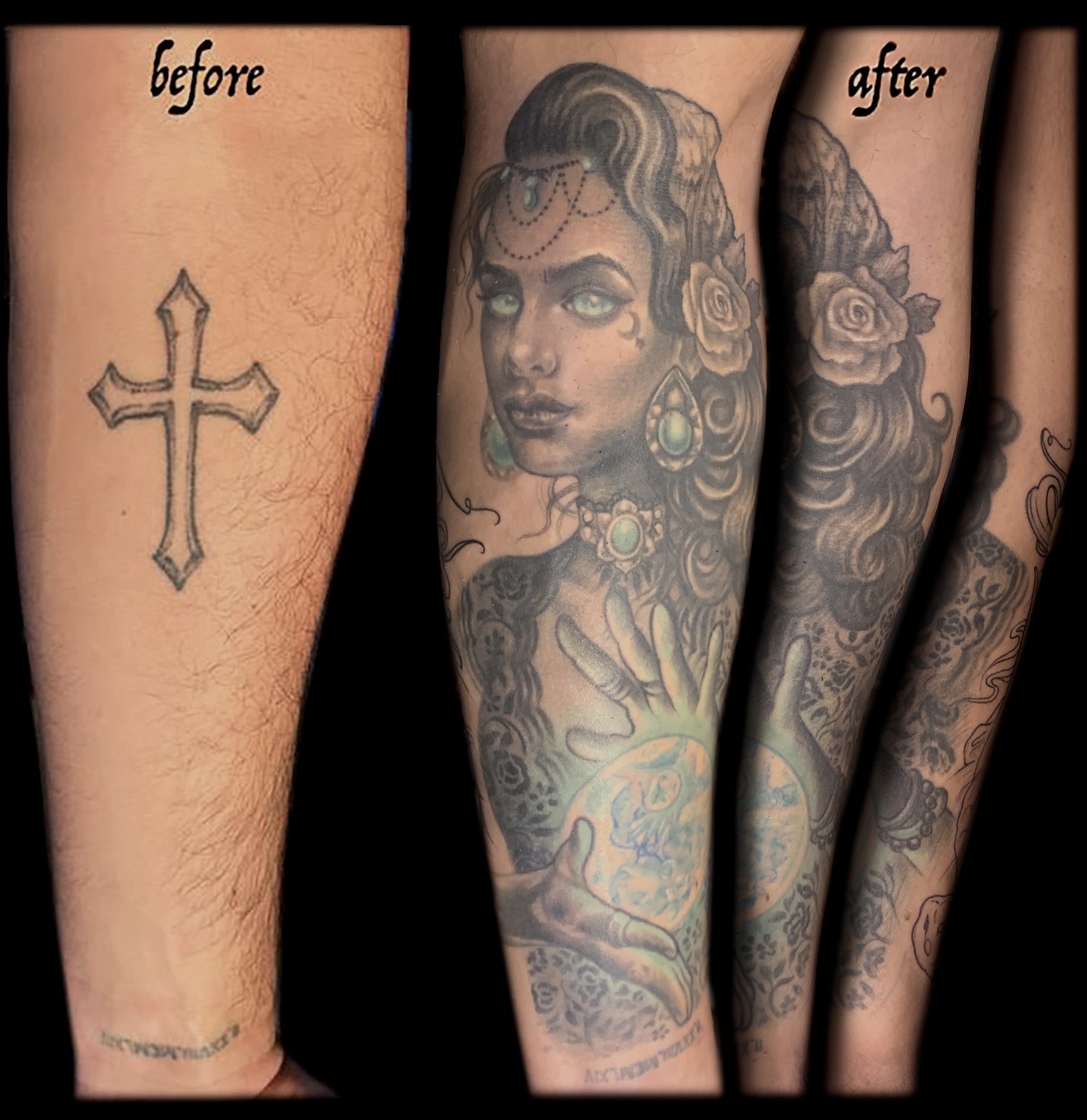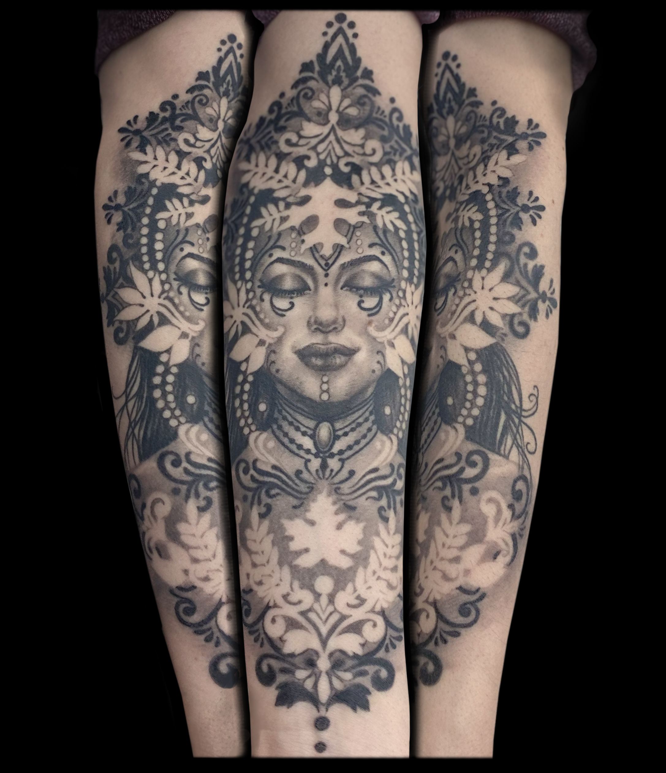 My name is Nicole Palapoli, I am a New York artist whose entire life has been driven by my exploration of visual arts. My artwork exists to illuminate our soul’s experience in human form; the duality of love and heartbreak, our connection with nature, sacred symbols and the unified field of consciousness. As it moves through me and onto it’s surface, my artwork has given my life a purpose beyond my own healing. My wish is to evoke reflective conversation, deep connections, emotional and spiritual healing in the hearts of my viewers as we co-create a more conscious existence. I graduated from the School of Visual Arts in NYC in 2002, studied Art Education at Queens College and studied abroad in Italy and Spain. After becoming a High School art teacher for the Board of Education, I felt completely restricted and needed a full time outlet for my creativity. I was introduced to tattooing in 2007 and quickly reinvented my life and never looked back. I am deeply honored and grateful to adorn human bodies and take it very seriously. My tattoo style is fluid, but as it evolves, I gravitate more toward color portraits, pinup girls and nature themed pieces rather than rigid geometrics. In 2012, I opened my first shop “Body Language Tattoo” in Astoria, Queens. After 7 successful years of business, I decided to close the doors in exchange for more flexibility to pursue my personal artwork and opened “Innerspace Gallery”. It was a private studio, in which I tattooed, sold various types of merchandise with my art as the theme, as well as offered virtual critiques, paintings, body paint sessions, paint & sips, murals, lessons and demos. Now I have just joined the crew at Red Baron Ink and I’m excited to see where this leads my art… hope to tattoo you soon 🙂 and thank you for exploring my artwork!